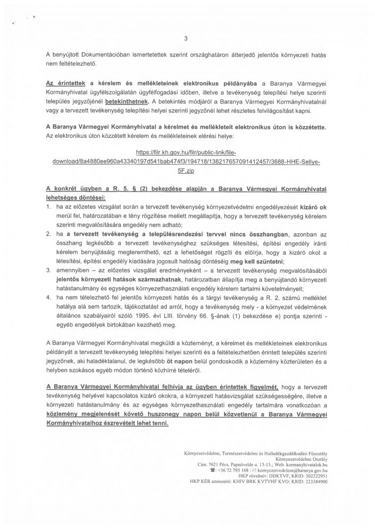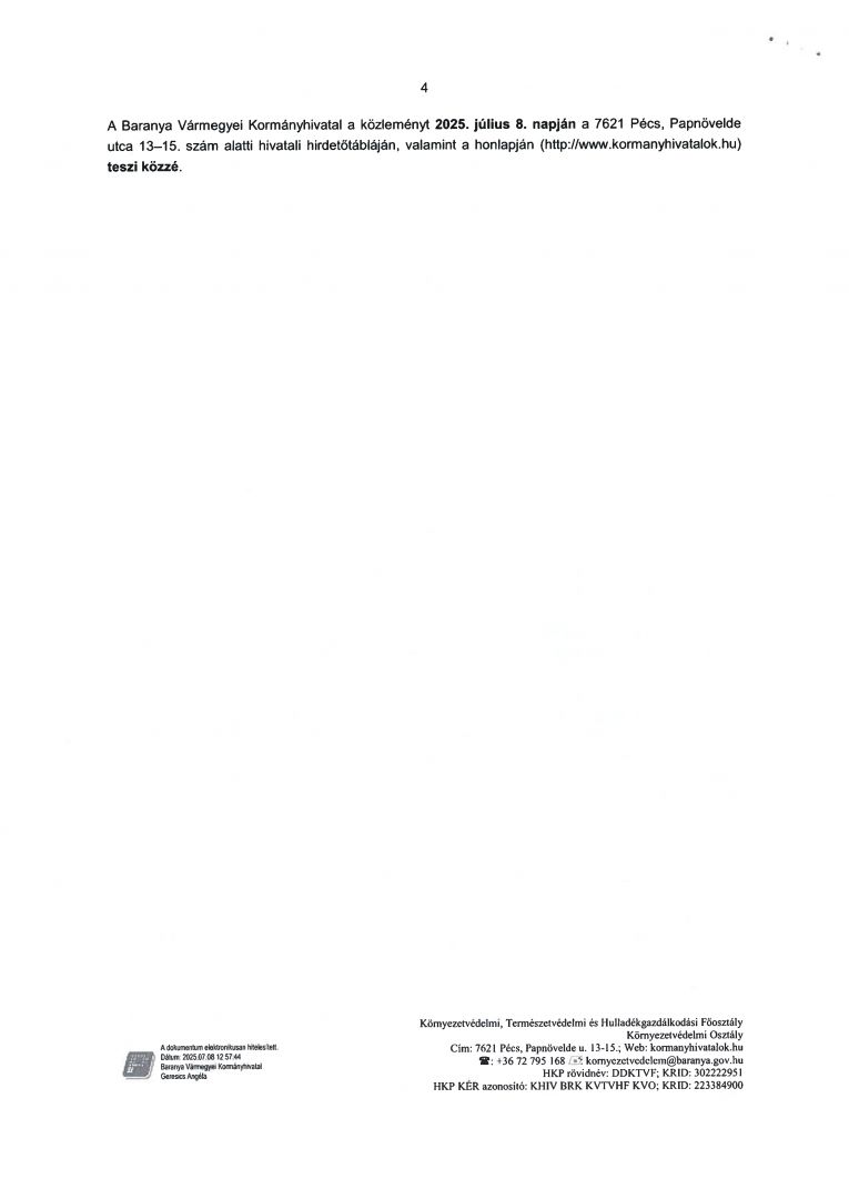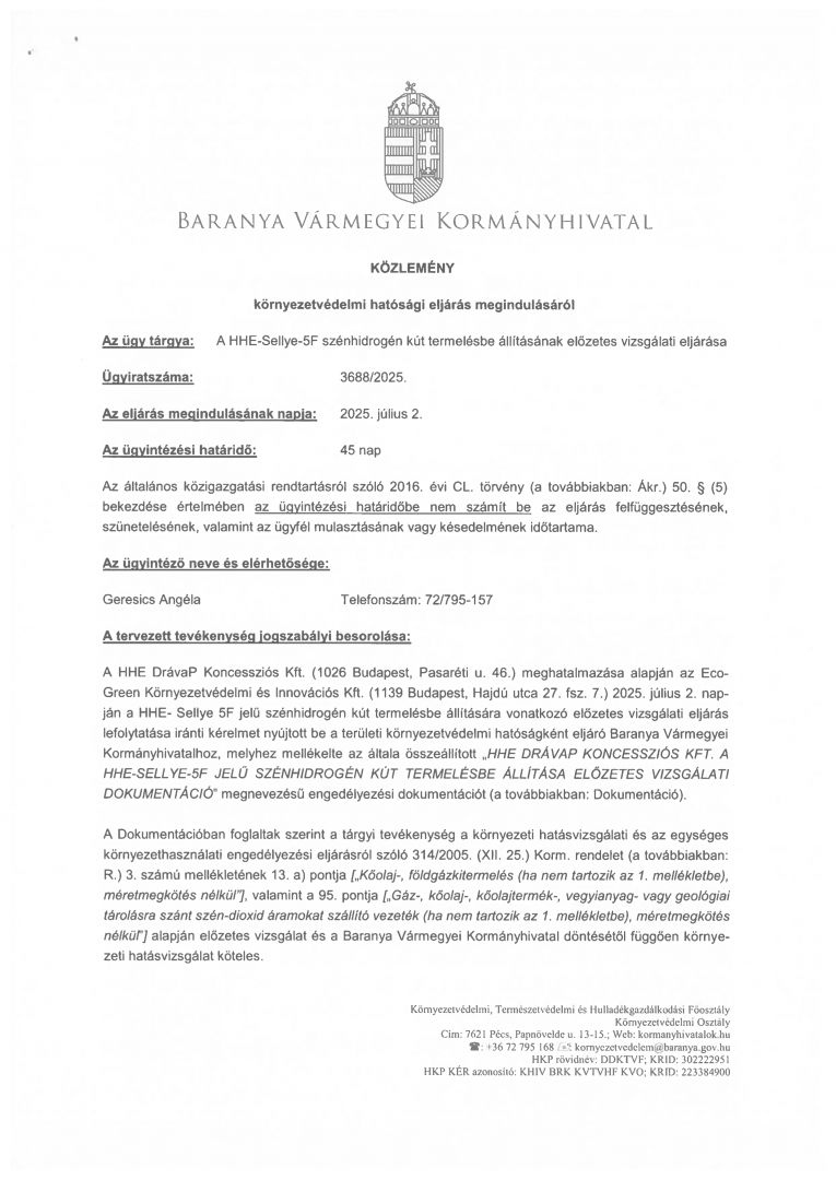 KÖZLEMÉNY KÖRNYEZETVÉDELMI HATÓSÁGI ELJÁRÁS MEGINDULÁSÁRÓL