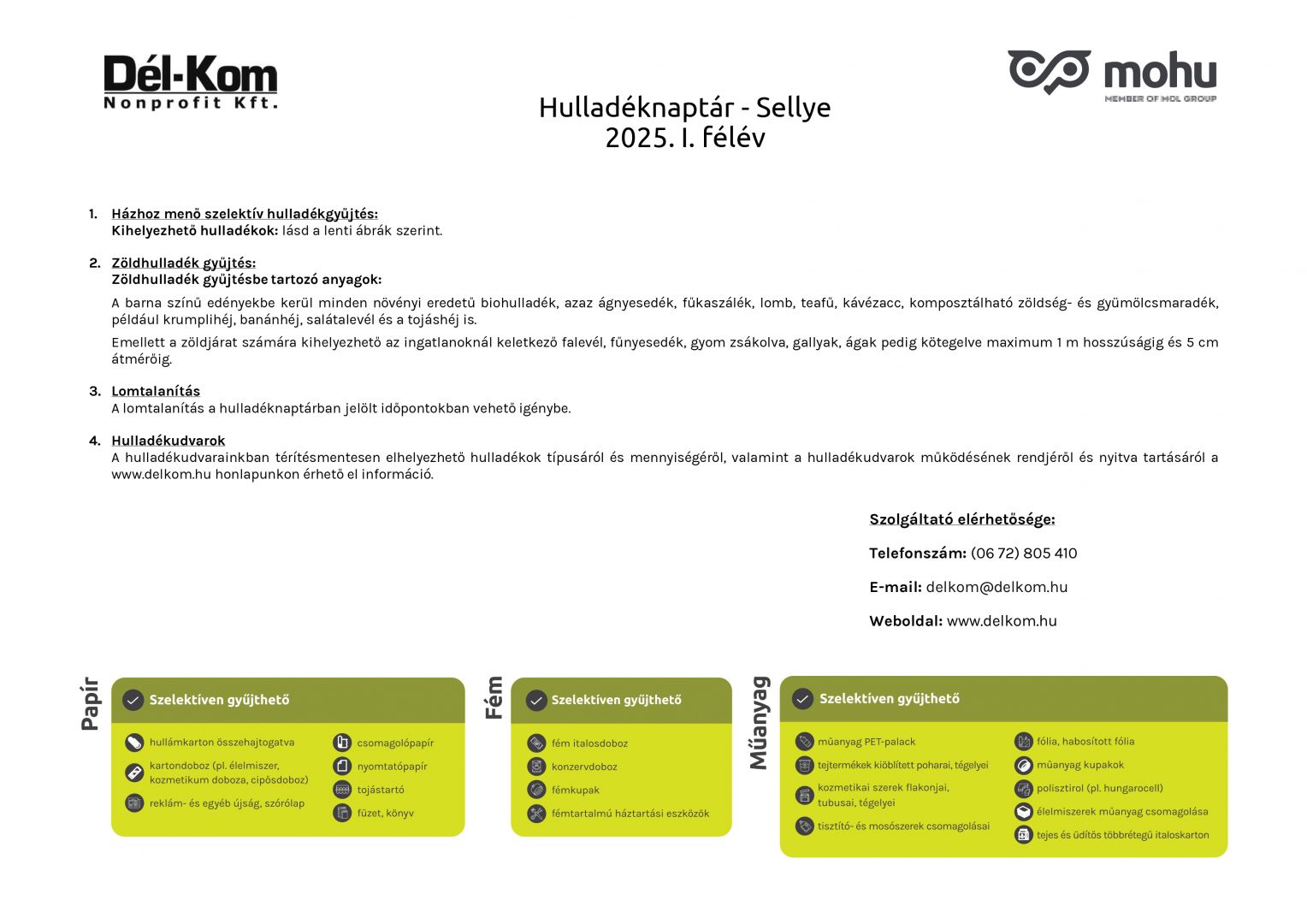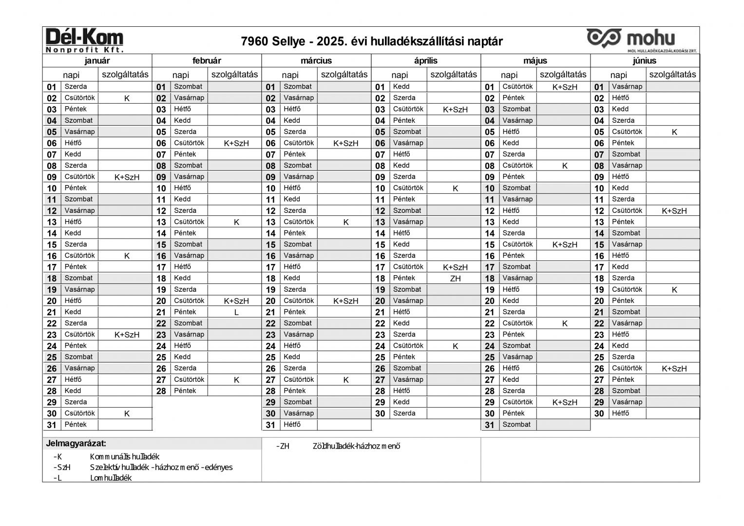 2025. ÉVI HULLADÉKSZÁLLÍTÁSI NAPTÁR