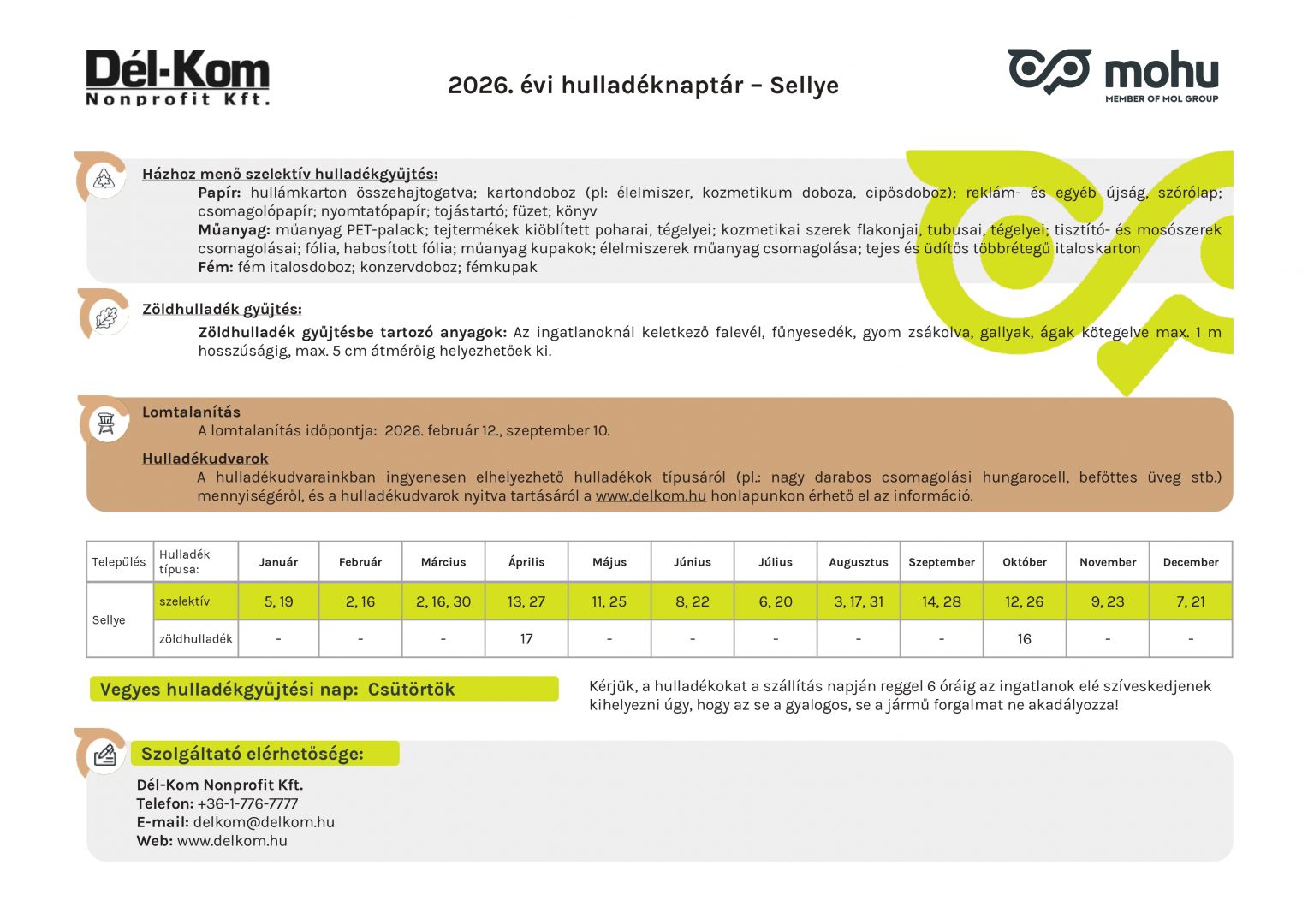 2026. ÉVI HULLADÉKNAPTÁR