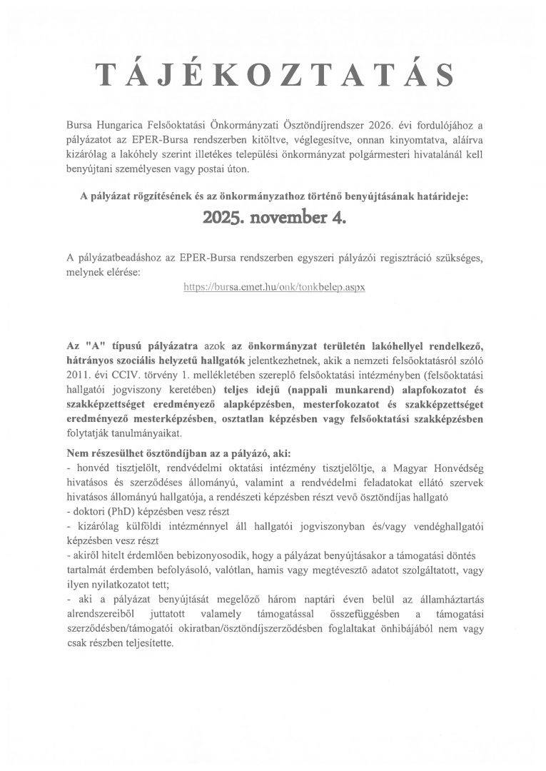 BURSA HUNGARICA PÁLYÁZAT