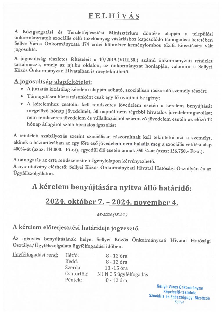 FELHÍVÁS SZOCIÁLIS TŰZIFA IGÉNYLÉSÉRE