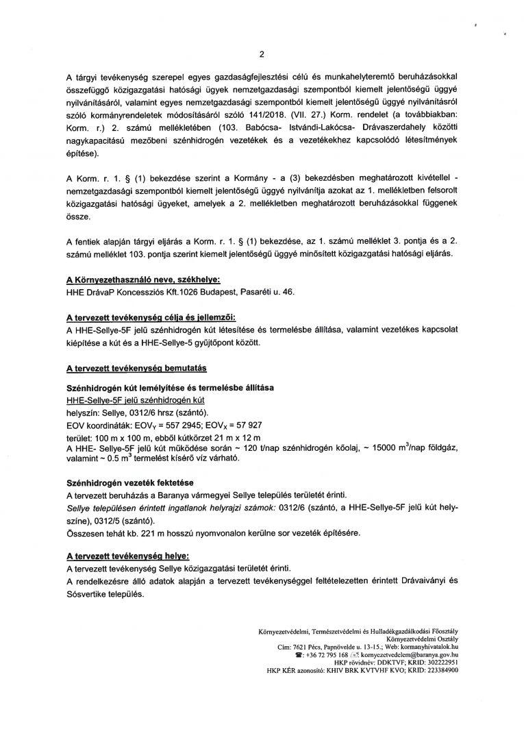 KÖZLEMÉNY KÖRNYEZETVÉDELMI HATÓSÁGI ELJÁRÁS MEGINDULÁSÁRÓL